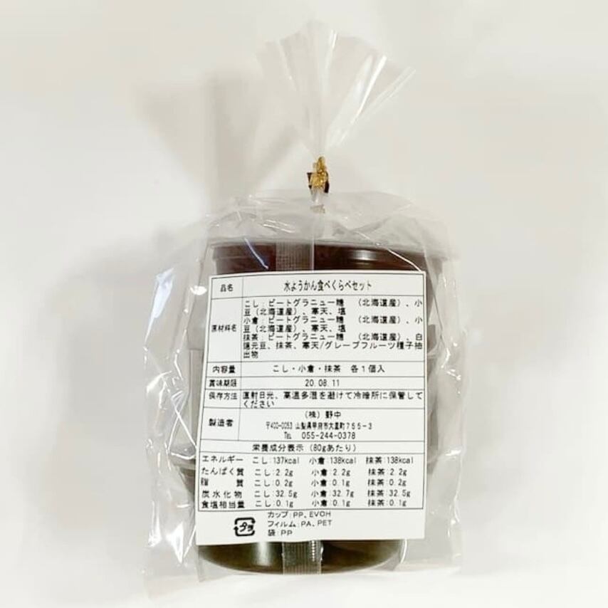水ようかんこし80g×1個、水ようかん小倉80g×1個、水ようかん抹茶80g×1個